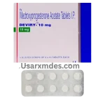 Deviry 10 mg (Medroxyprogesterone) is a prescription hormone tablet that contains medroxyprogesterone 10mg, a synthetic form of progesterone (progestin). It is commonly used for menstrual health concerns such as delayed periods, irregular cycles, or abnormal uterine bleeding when a clinician determines the cause is hormone-related. Because timing and underlying diagnosis matter, Deviry should be taken only as prescribed, after pregnancy is ruled out when appropriate.