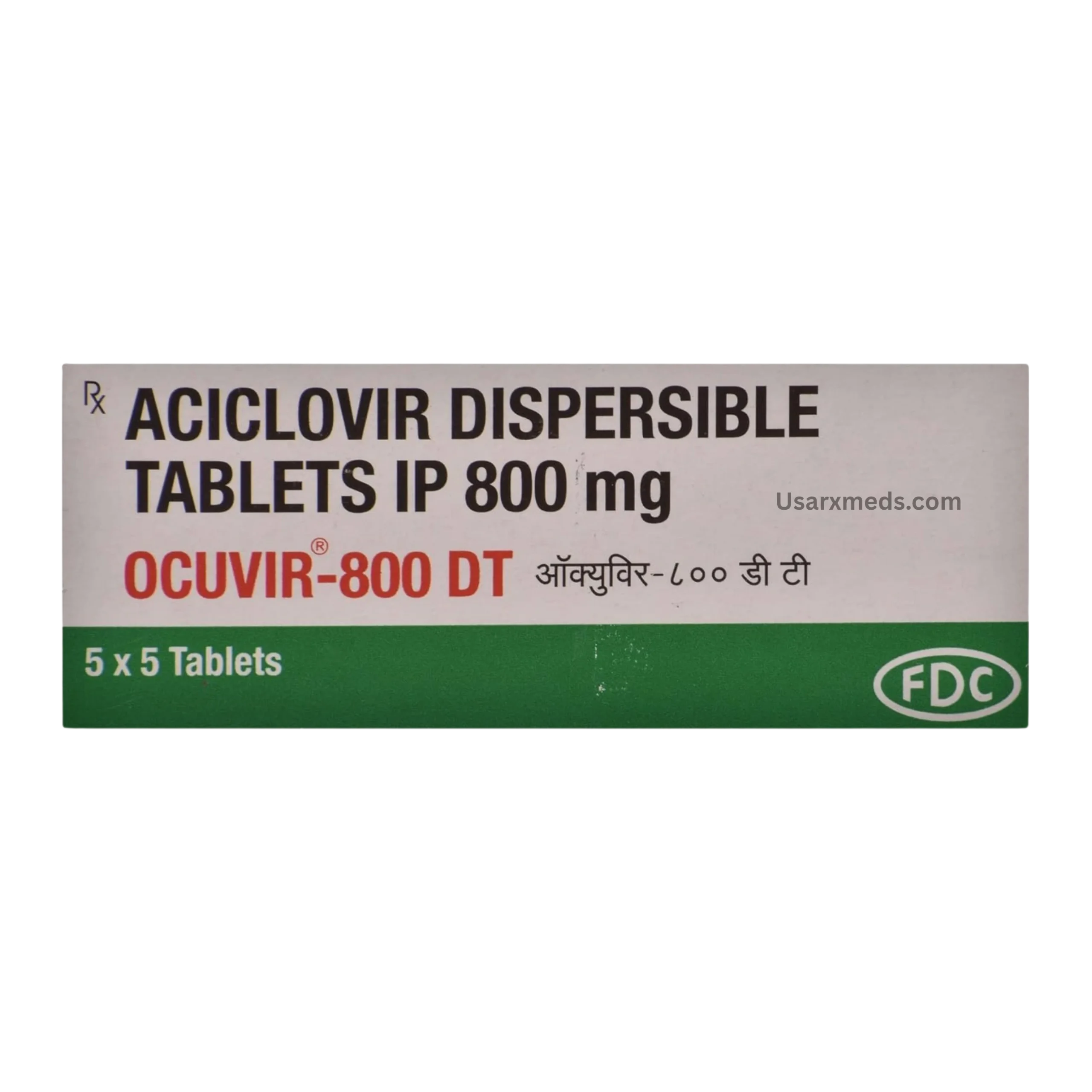 Ocuvir DT 800 is a tablet that may be broken up and has 800 mg of Acyclovir, which is a well-known antiviral drug. It is meant to treat serious viral infections caused by the herpes virus group, such as shingles (herpes zoster), genital herpes, and chickenpox. The DT (Dispersible Tablet) shape makes it easy for people who have trouble swallowing normal tablets to take it because it dissolves quickly in water.