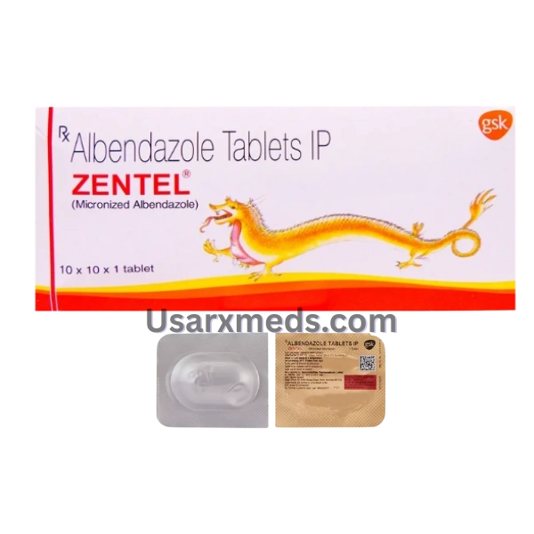 Zentel 400 mg is an oral Albendazole tablet prescribed to treat intestinal parasitic worm infections and certain tissue parasites. It works by disrupting the parasite’s ability to absorb glucose starving and killing the worms. Manufactured by GlaxoSmithKline, Zentel treats a wide range of helminth infections in both adults and children over 2 years.